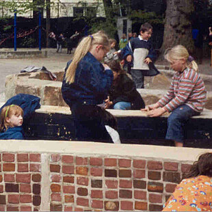 Ende 1994 gründen Eltern eine Schulhof AG und widmen sich engagiert der Umgestaltung des Schulhofes zur Hügellandschaft mit Pflanzenbeeten, Büschen und Sträuchern. Hinzu kommen Weidenhaus, Schwebebalken, Basketballkorb und eine Sitzecke aus Findlingen.