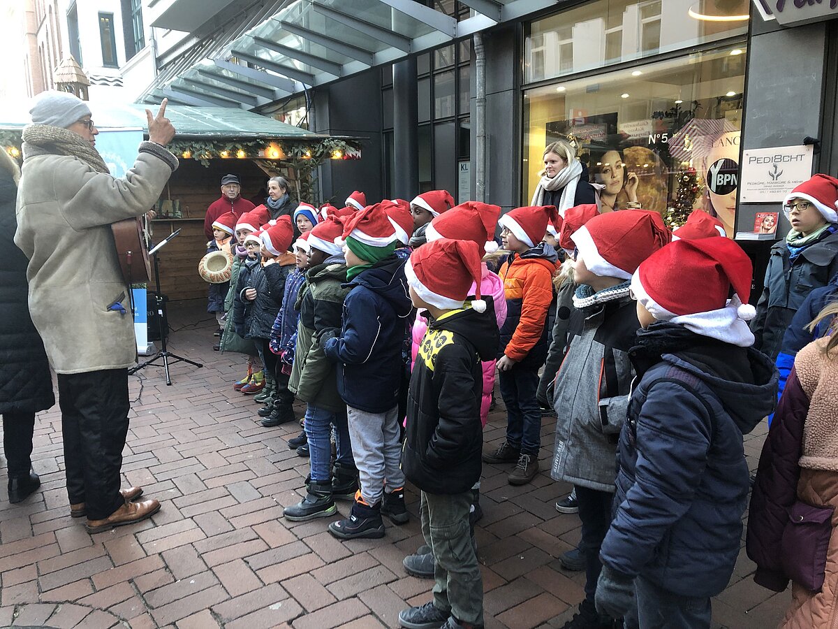 Am Donnerstag, den 15.12. trafen sich im Laufe des Tages fast alle Schülerinnen und Schüler der Boni zum gemeinsamen Singen an der Kirchenbude. Die Schülerinnen und Schüler sammelten mit Gesang, Instrumentalbeiträgen und Tanz Geld für unsere Partnerschule in Loma Alta. Zuvor wurde in den Klassen, in den Betreuungsgruppen und im Schulchor fleißig geübt. Es war auch in diesem Jahr wieder eine große Freude den Kindern zuzuhören! – Wer die Auftritte verpasst hat, sollte versuchen uns im nächsten Jahr zu besuchen! Es lohnt sich!